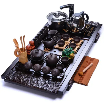 BEST Living Room Purple Clay Kung Fu tea set Tea tray induction cooker four in one Puer Teapot Ceramic t