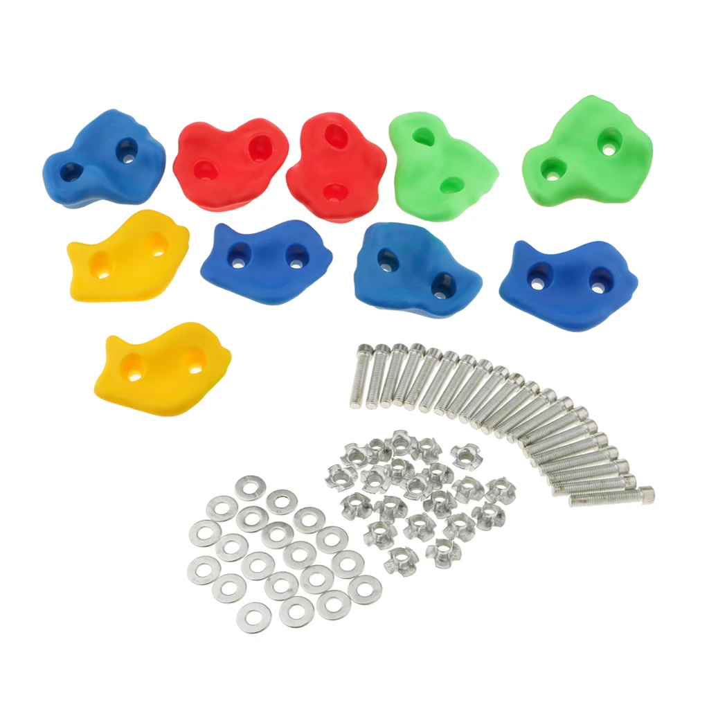 10pcs Climbing Frame Mixed Color Rock Climbing Wall Stones Hand Feet Holds Grip Hardware Kits Child